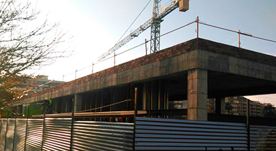 Ejecución de fachadas metálicas con panel prefabricado, mejorando el aislamiento acústico y térmico del edificio.